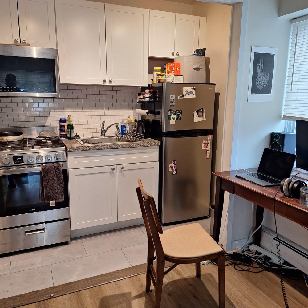 The unit offers a large main room with a renovated open kitchen and full bath.