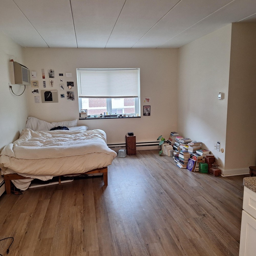 This lovely studio, situated on the sixth floor of a small building is convenient to Harvard and Central Square T stops, and also the #1 Bus to Longwood.